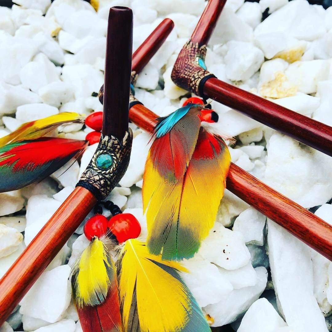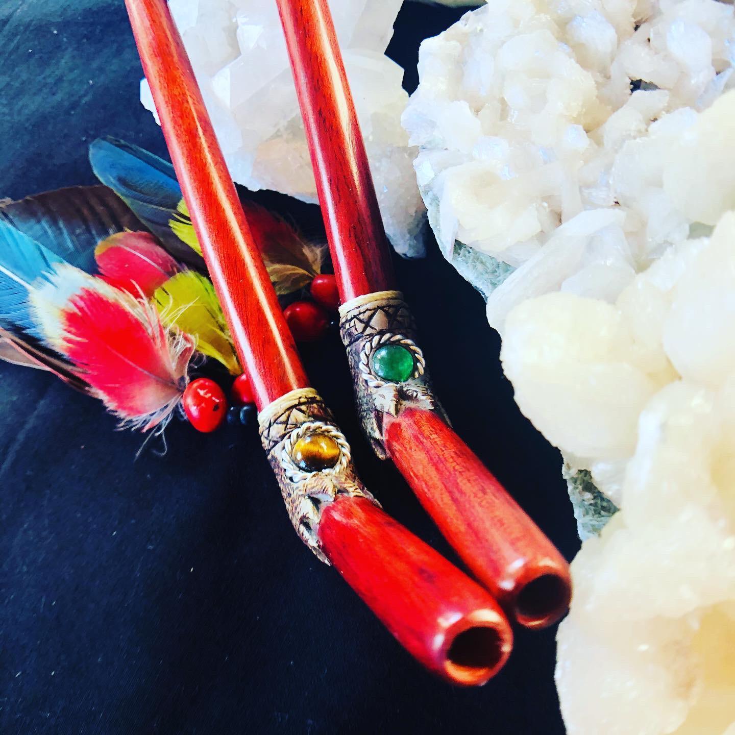 Made with sustainably harvested Palo Sangre (Blood Wood) for the pipe pieces, imparting a delightful aroma every time you apply your medicines... This is a beautiful type of hardwood, sustainably harvested, and filled with the intense energy of the Amazon jungle.