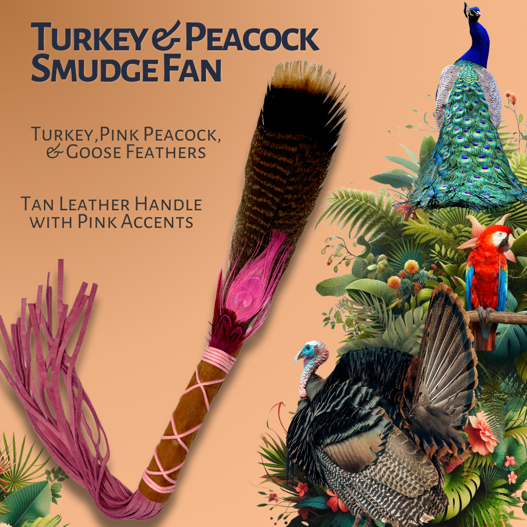 Turkey & Peacock Feather Smudge Fan